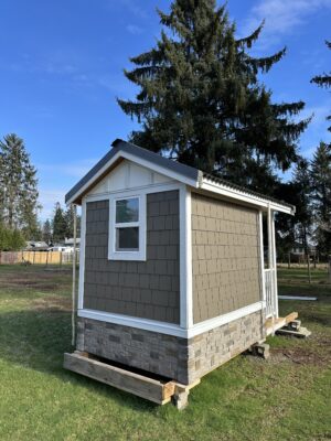 Habitat volunteers Gardiner and Bob worked alongside our Build team to construct the shed, contributing 48 volunteer hours to bring it to life. Every bid placed helps support Habitat for Humanity Vancouver Island North’s mission to build safe, affordable homes in our community.